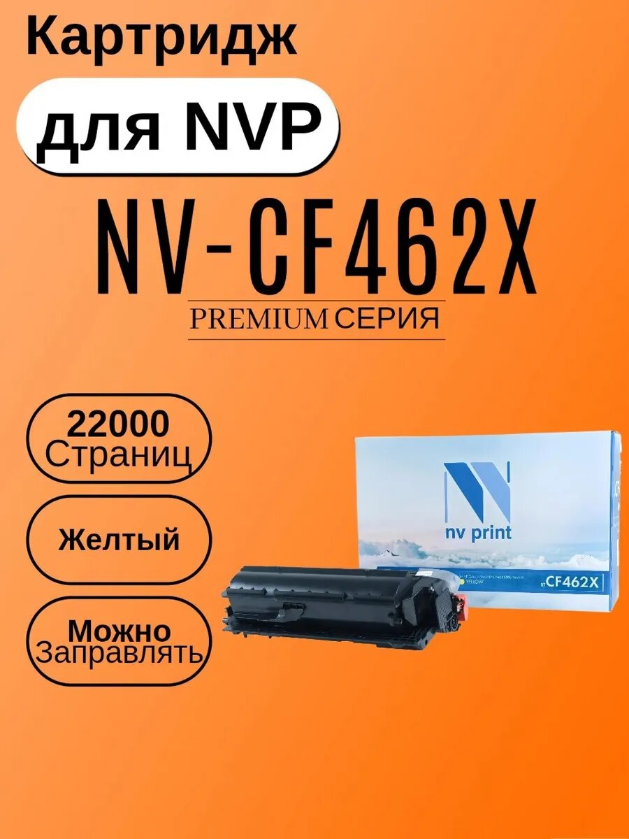 Лазерный картридж NV Print NV-CF462XY для для HP CLJ M652, HP CLJ M653, CF462X (совместимый, жёлтый, 22000 стр.)