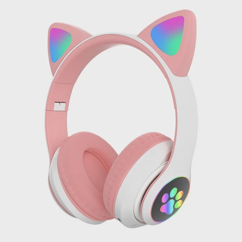 Беспроводные наушники "Кошачьи ушки", светящиеся, CAT STN-28 (розовые)
