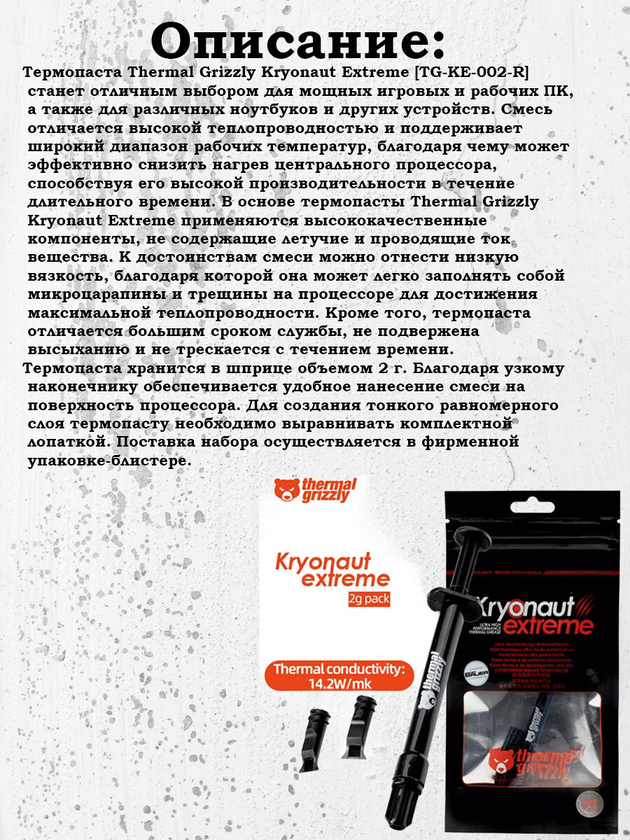 Термопаста Thermal Grizzly Kryonaut Extreme 2 грамма Tg-ke-002-r Tg-ke-002-r .