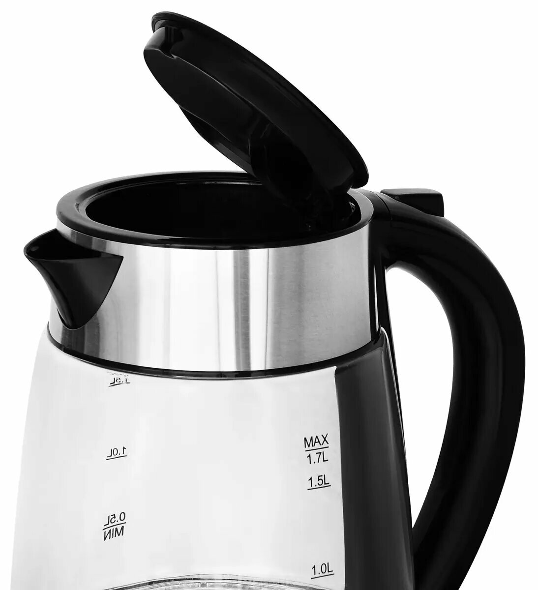Была цель прикупить простой чайник без наворотов, но увидела этот и просто влюбилась. Простенький на первый взгляд, но при работе есть подсветка, глаз не отвести. Первые дни использования не могла налюбоваться. По сравнению с предыдущим очень мощный, по ощущениям закипает вода моментально))) Мягкая клавиша включения, не западает, не клацает. При закипании автоматически отключается, ну это уже давно для электрочайников не новость. На самом деле хорош всем. И то, что колба прозрачная вообще максимальный комфорт. Всегда видно уровень воды. Приобретением довольна.