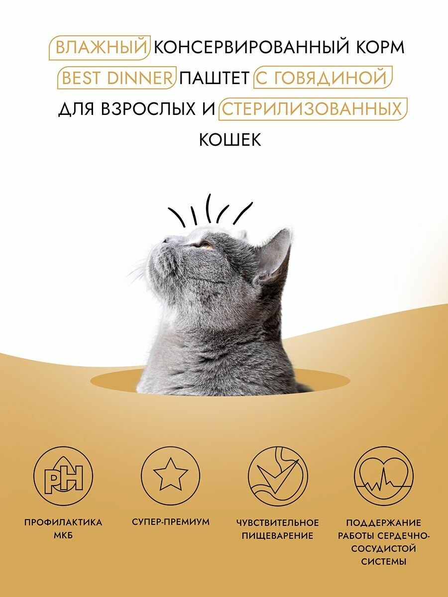 BEST DINNER для взрослых кастрированных котов и стерилизованных кошек паштет с говядиной 100г ламист 100 гр х 14 шт