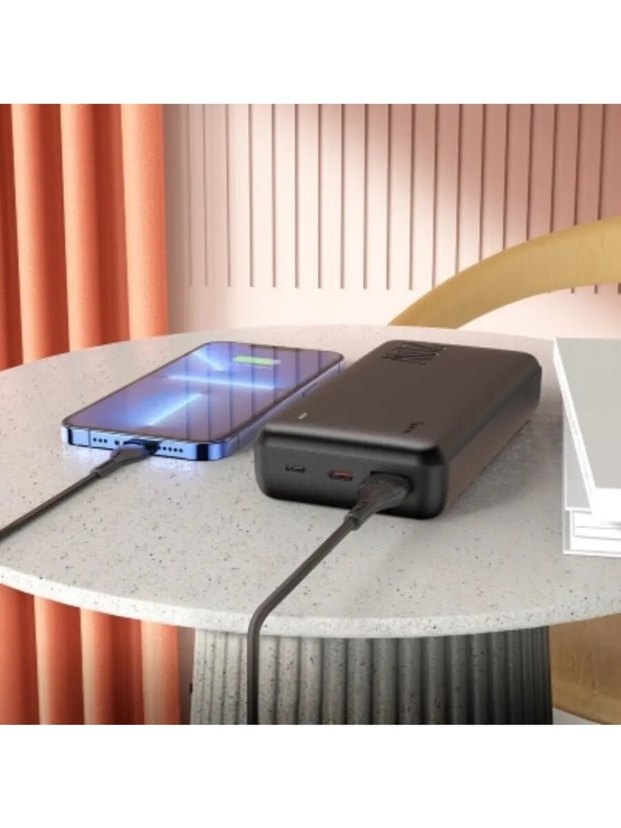 Внешний аккумулятор J87А, 20000 мАч, 1 USB, 1 Type-C, 3 А, дисплей, чёрный
