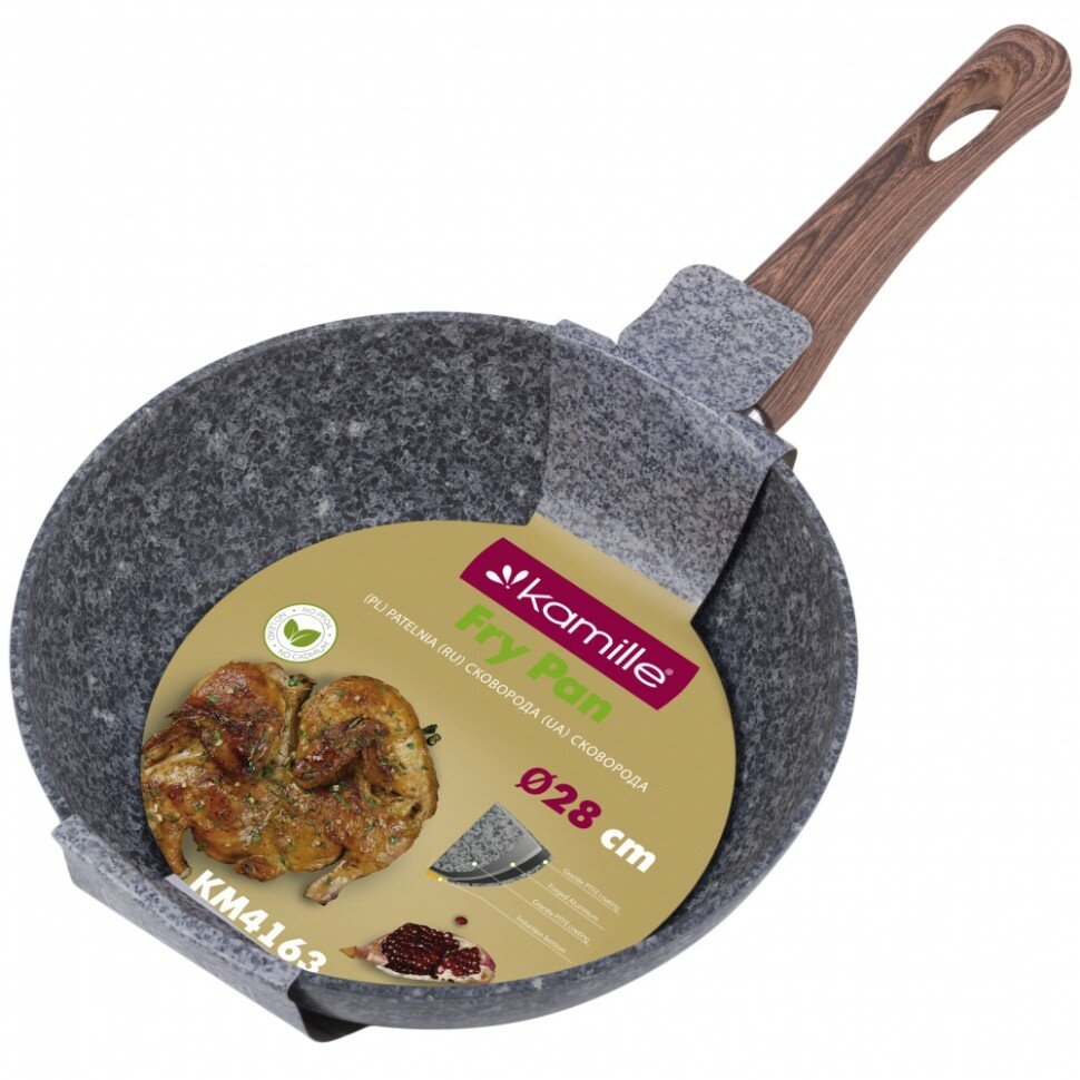 Сковорода Kamille 280х55 алюмиевая с гранитным покрытием серая