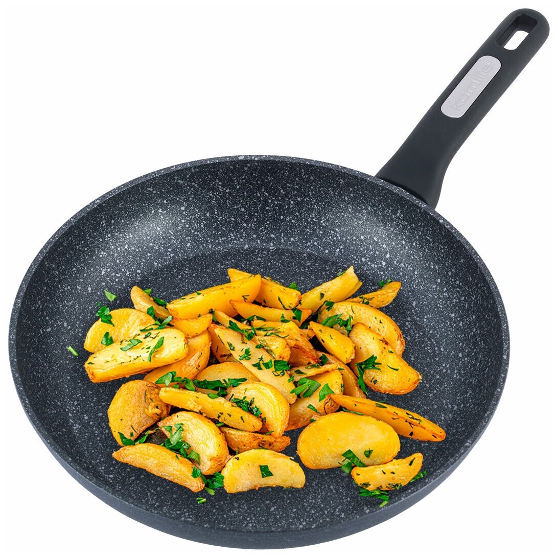 | Дополнительная информация | Длина ручки: 16 см. Материал: кованный алюминий. Материал ручки: бакелит с покрытием "soft-touch". Антипригарное покрытие: ILAG черный мрамор PTFE покрытие. |