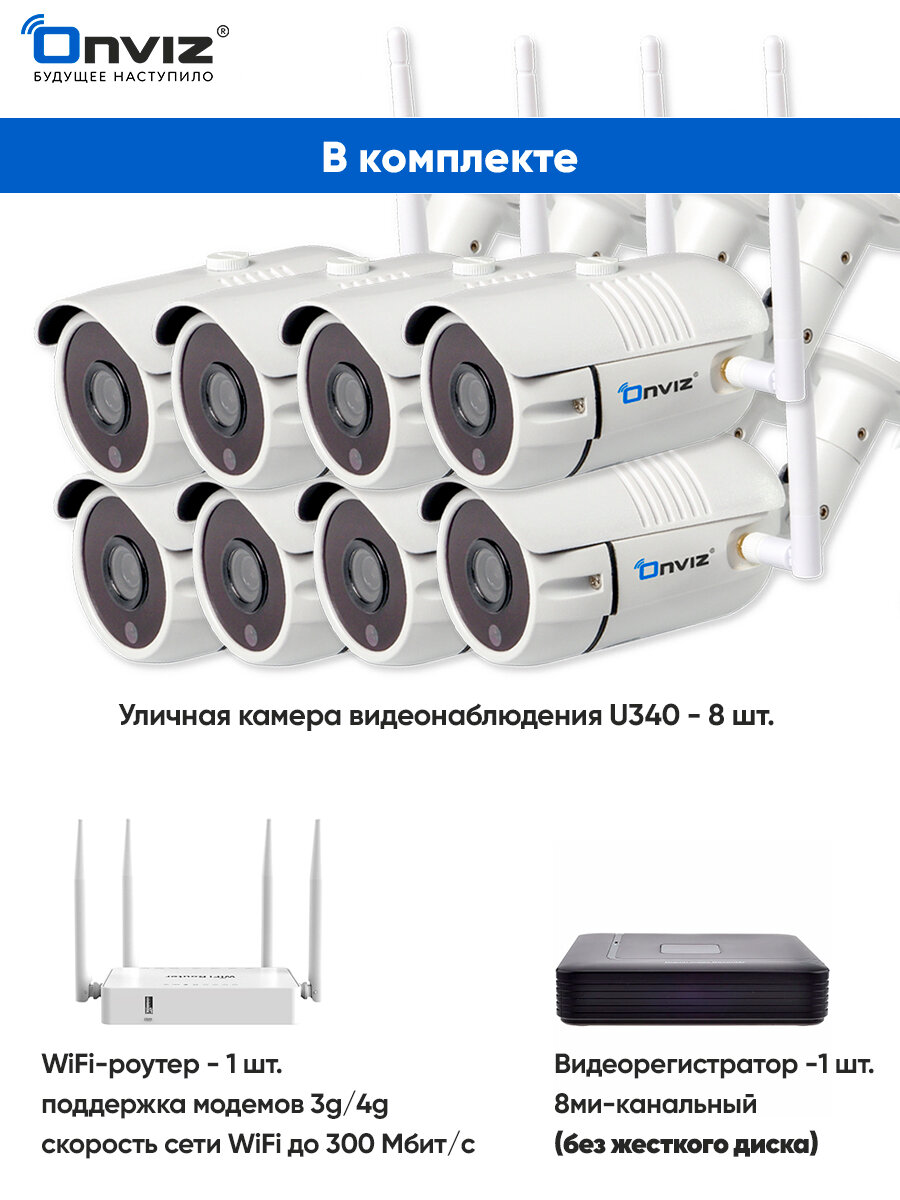 Комплект из 8-ми уличных ip WiFi камер видеонаблюдения 2 Мп Onviz U340 Pro, набор беспроводных камер для дачи, видеонаблюдение уличное