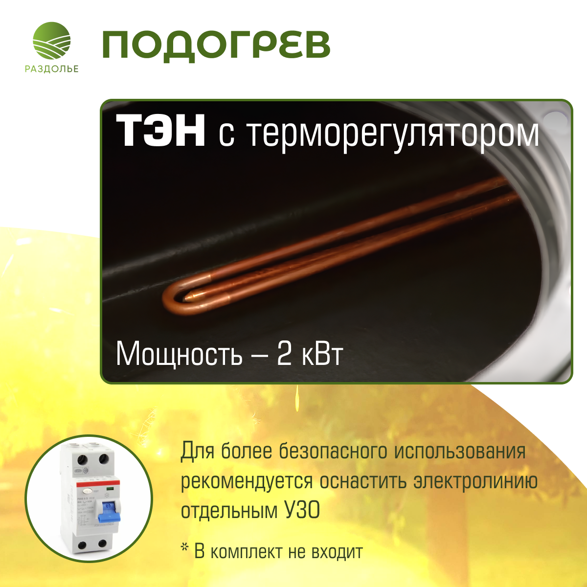| Дополнительная информация | В комплекте: лейка для душа, установленный ТЭН, отвод, индикатор уровня. |