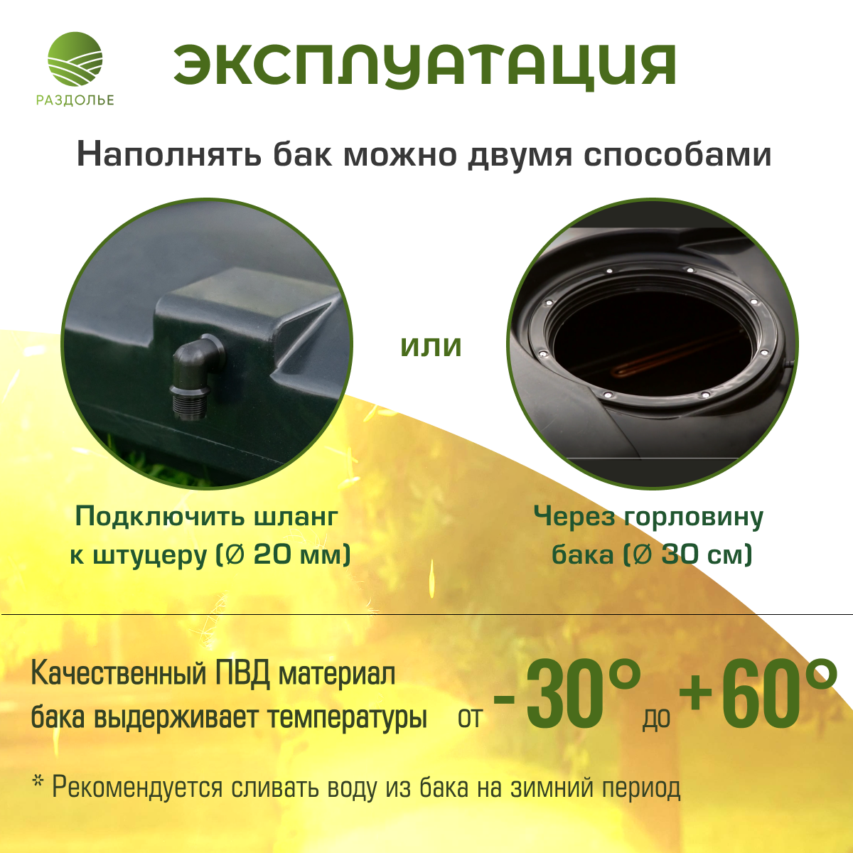 Бак для душа Rostok 200 литров с подогревом и лейкой