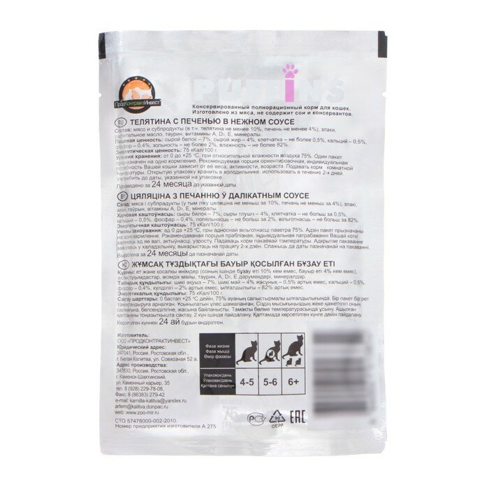 Упаковка 24 пауча для кошек PUFFINS Телятина с печенью в соусе
