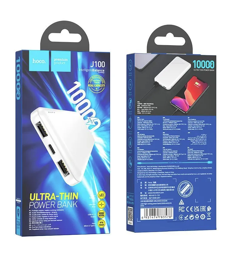 СохранитьВнешний аккумулятор Hoco J100, 10000 mAh, 10 W, High-ranking/ power bank (2USB:5V-2.1A), черный интересное: