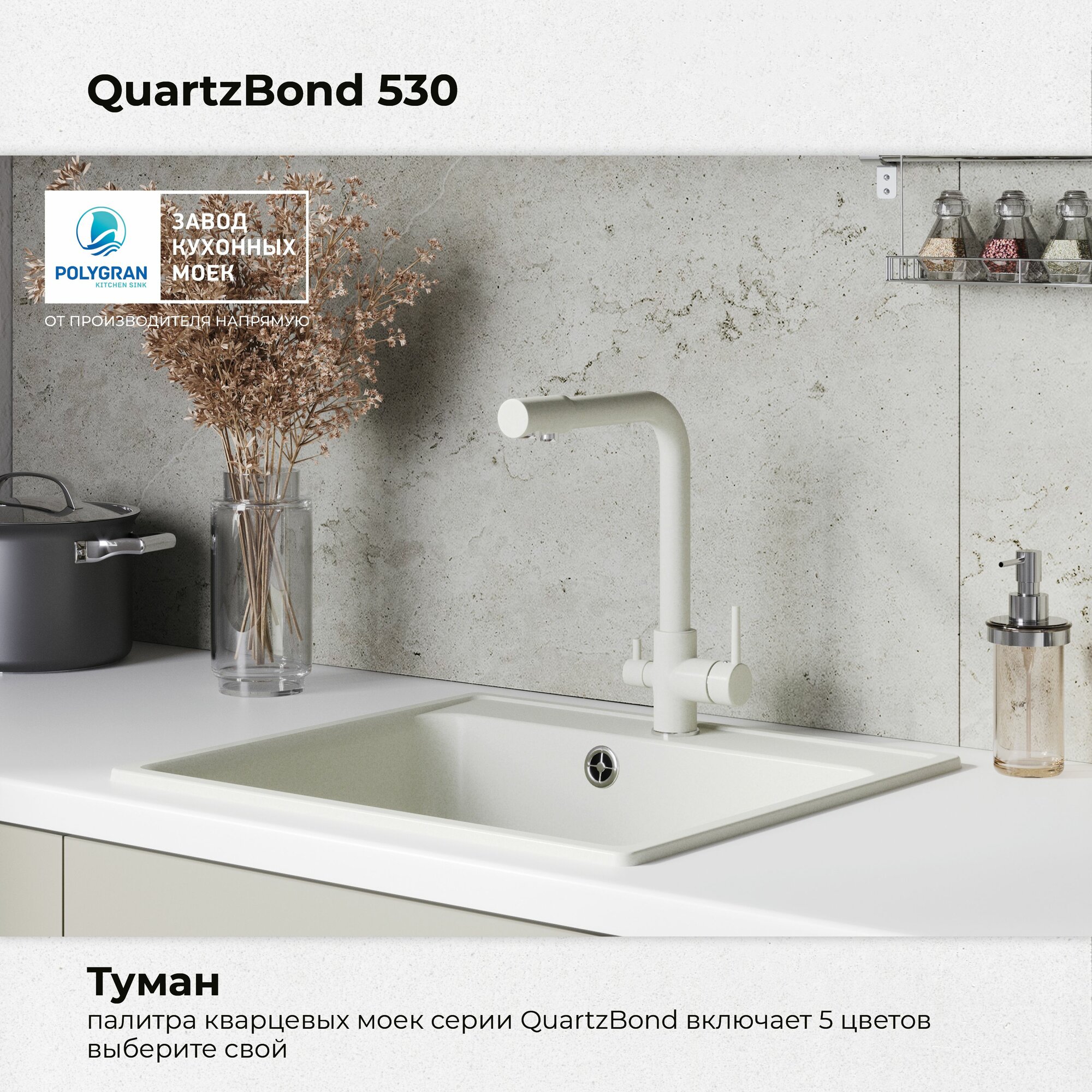 Кухонная мойка Polygran Quartz Bond 530 туман