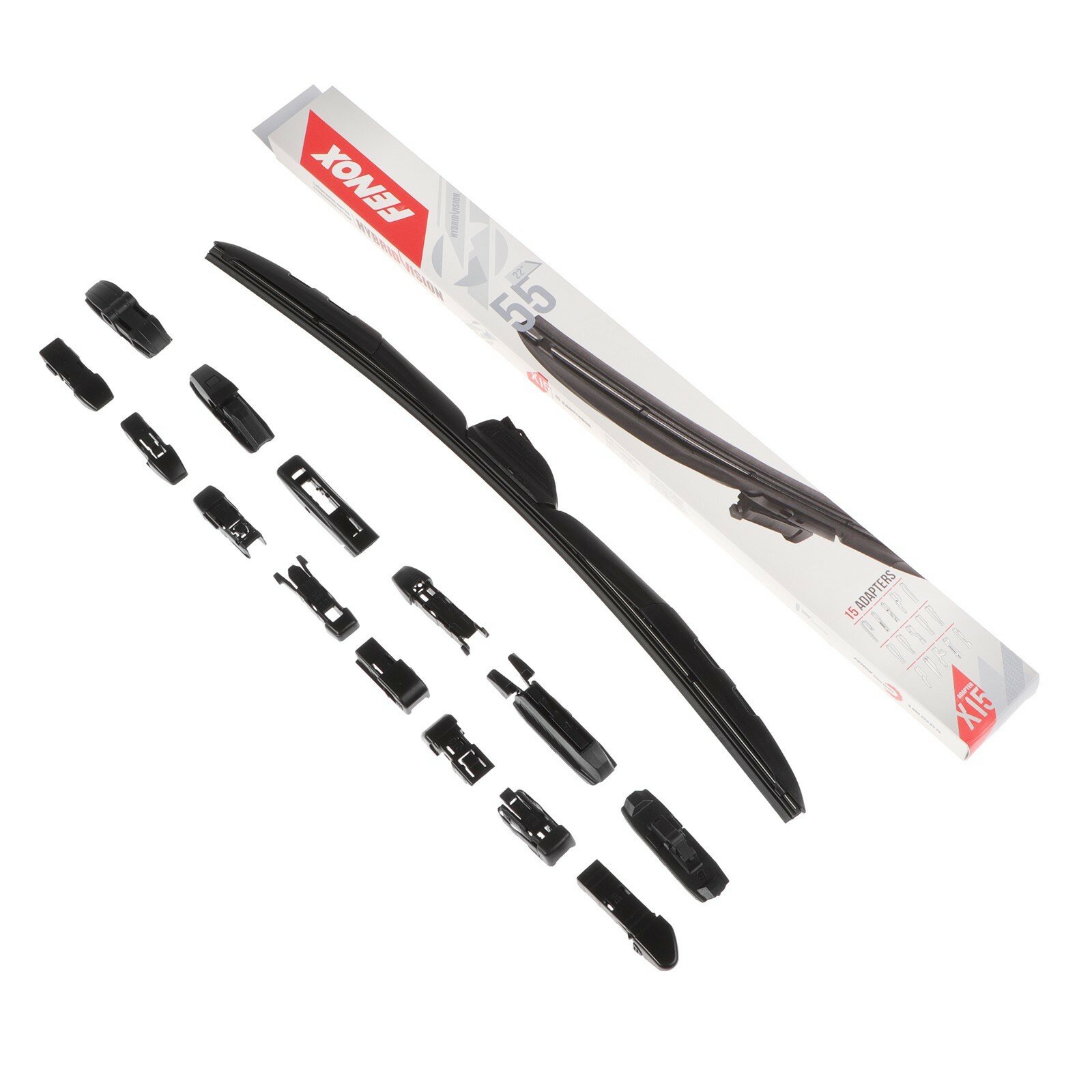 Щетка стеклоочистителя FENOX, 22"/550 мм, гибридная, крепления 15 в 1, WB55240