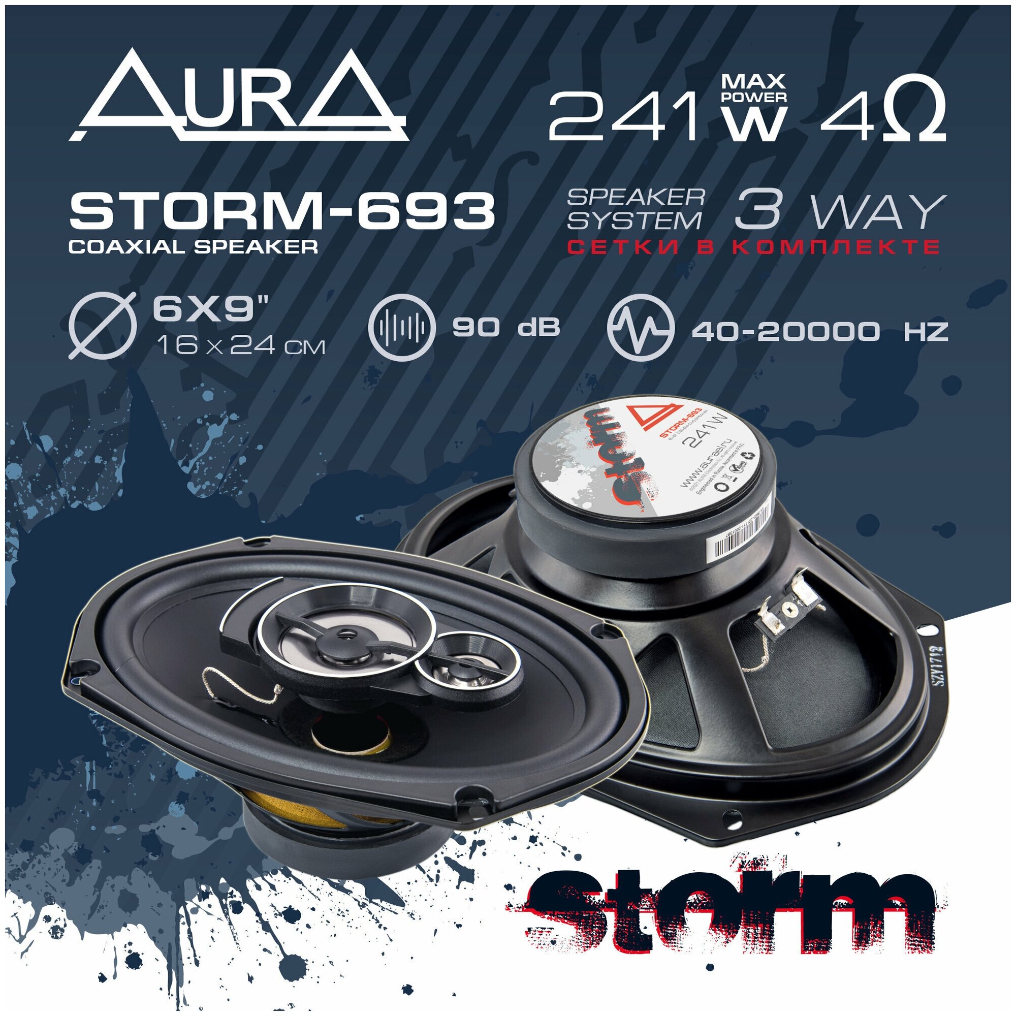 Динамики AURA STORM-693 / коаксиальные / 6х9 дюйм (овалы) / 3-х полосные / защитные сетки / 2 шт.