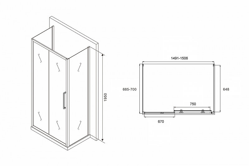 Душевой уголок Abber Schwarzer Diamant 1500х700 мм (габариты площадки) AG30150H-S70-S70