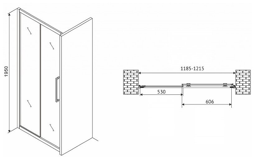 Душевая дверь Abber Schwarzer Diamant 195х120 AG30120H