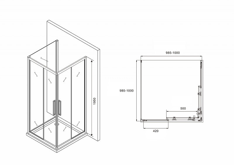 Душевой уголок Abber Schwarzer Diamant AG02100BH-S100B , профиль черный
