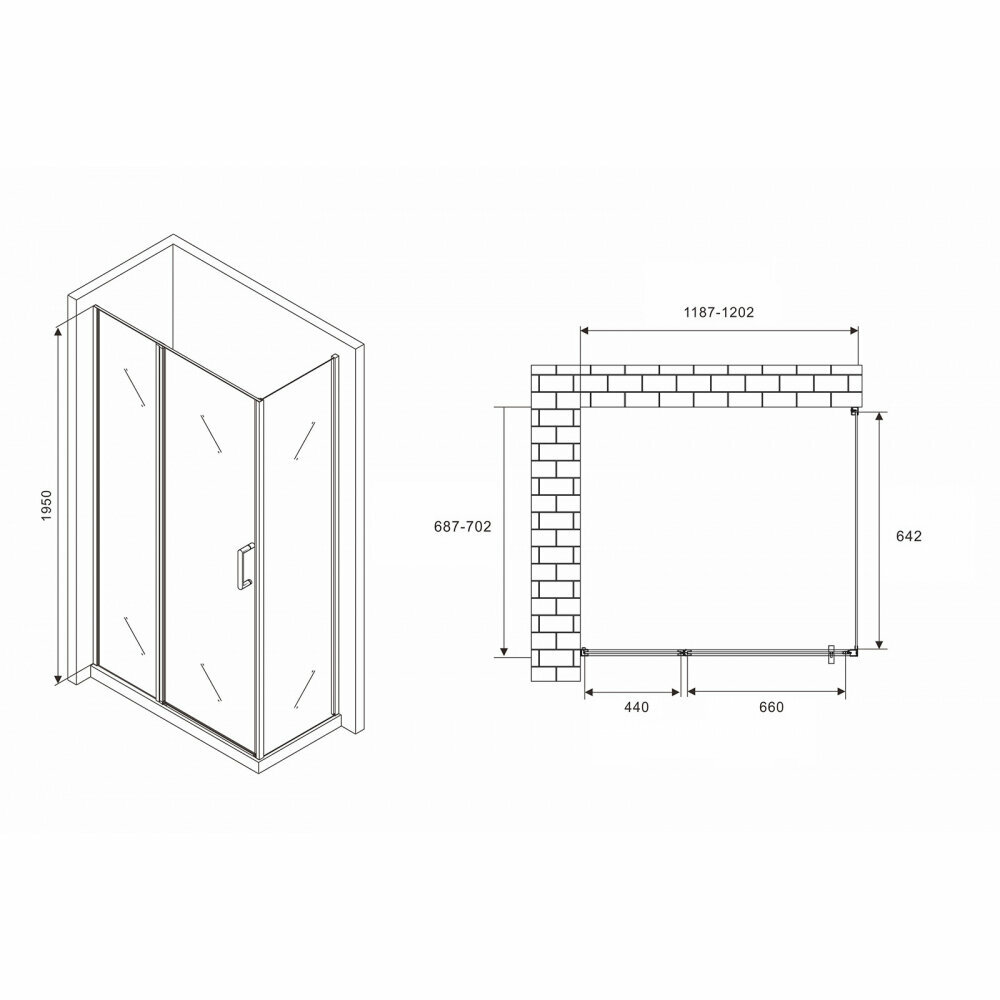 Душевой уголок Abber Sonnenstrand 1200х700 мм (габариты площадки) AG04120S-S70