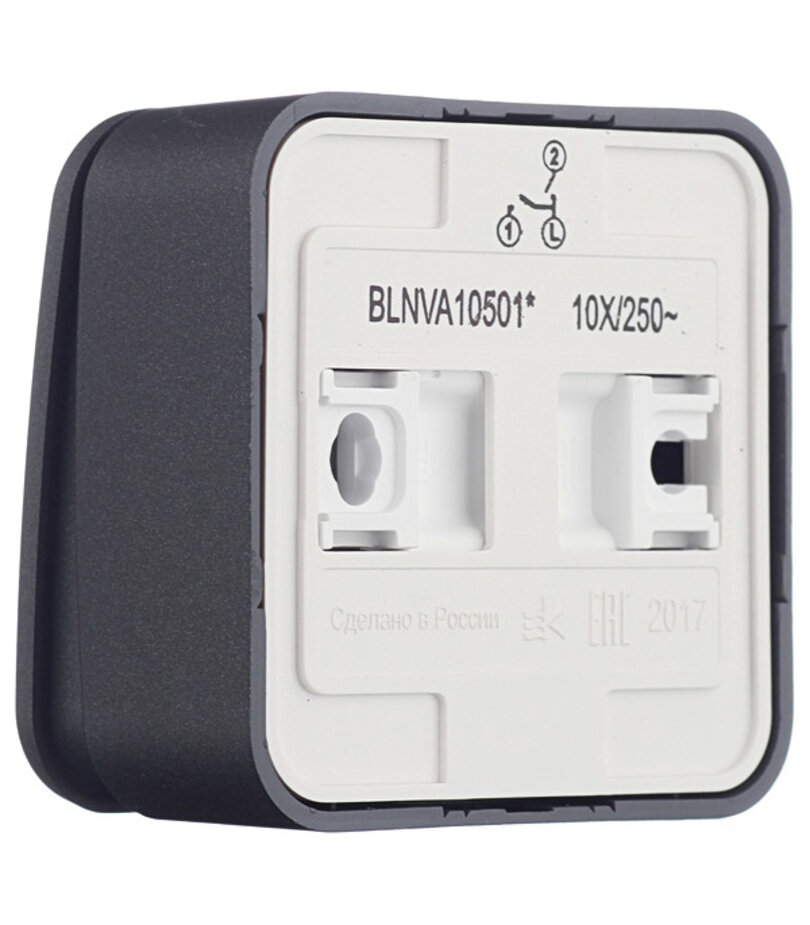 10шт. - Выключатель BLANCA двухклавишный наружный (схема 5) с изоляционной пластиной 10A 250B антрацит / Systeme Electric; арт. BLNVA105016; оригинал / - комплект 10шт