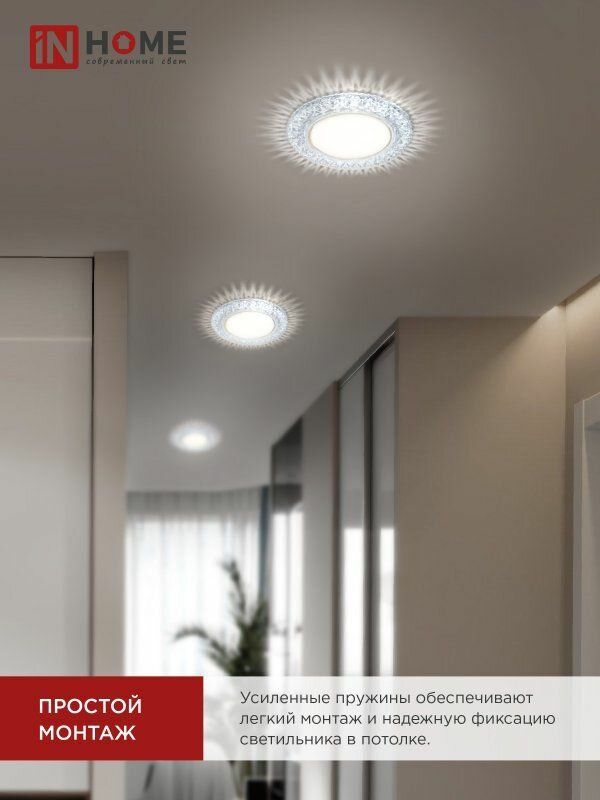 Светильник встраиваемый IN HOME GX53R-R02L-crystal под лампу GX53 с подсветкой Тонированный/ Хром 4690612016214