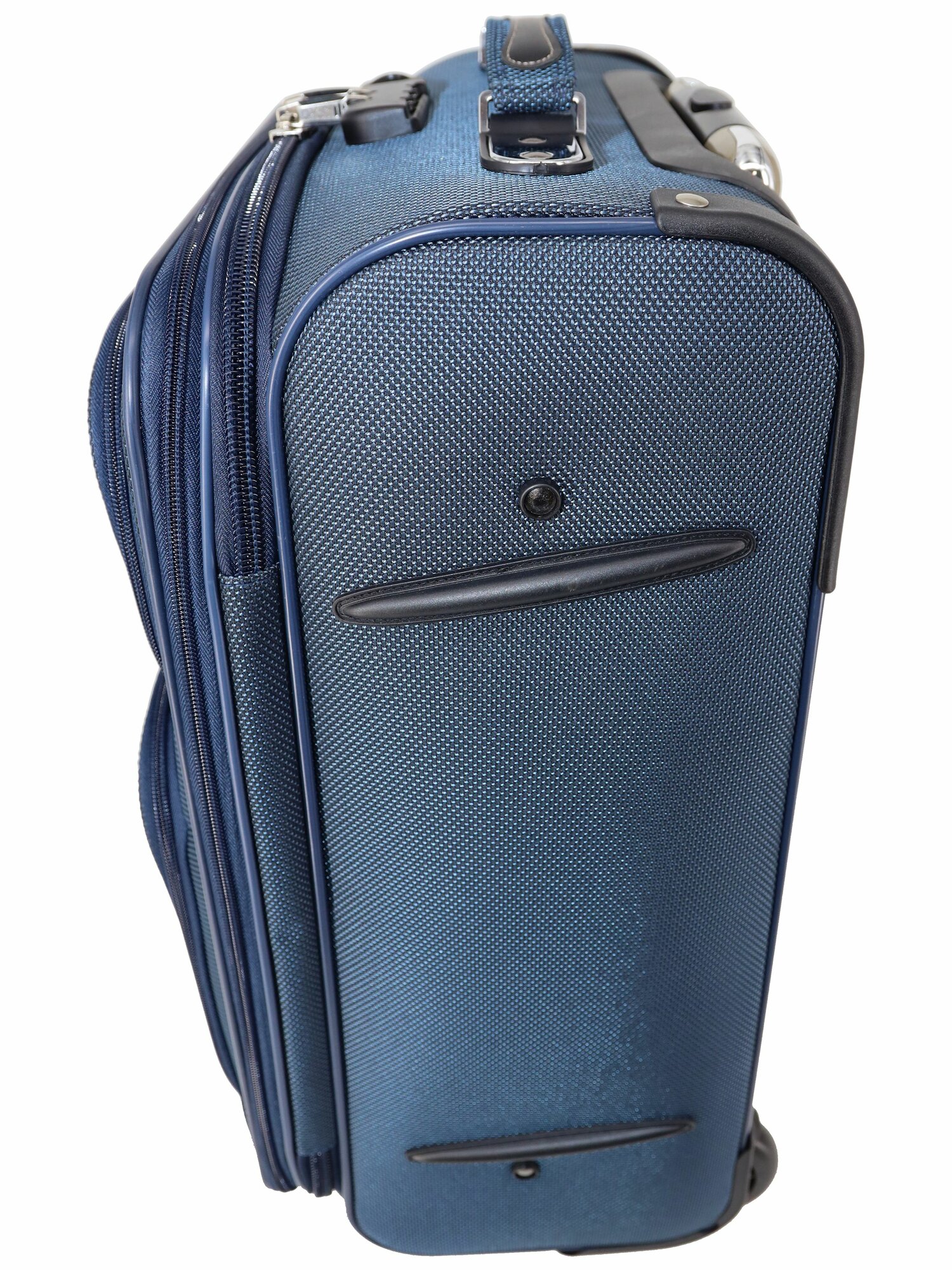 Чемодан Рион+ (RION+) R407, Ткань, 67 см 91 литр 2 колеса, L (70-100 см), трансформер, усиленный до 25кг, синий