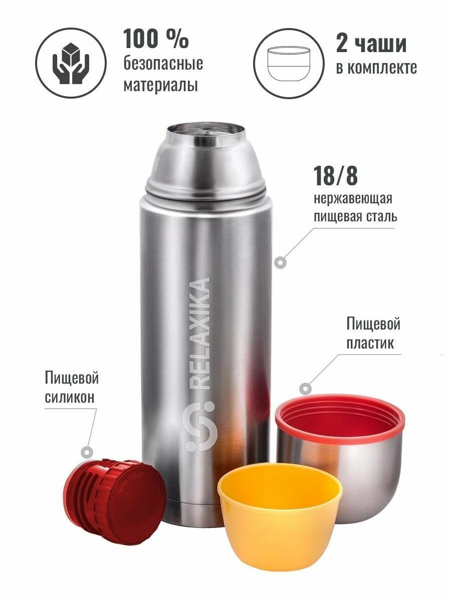 Термос Relaxika 102 (1 литр), 2 чашки, стальной