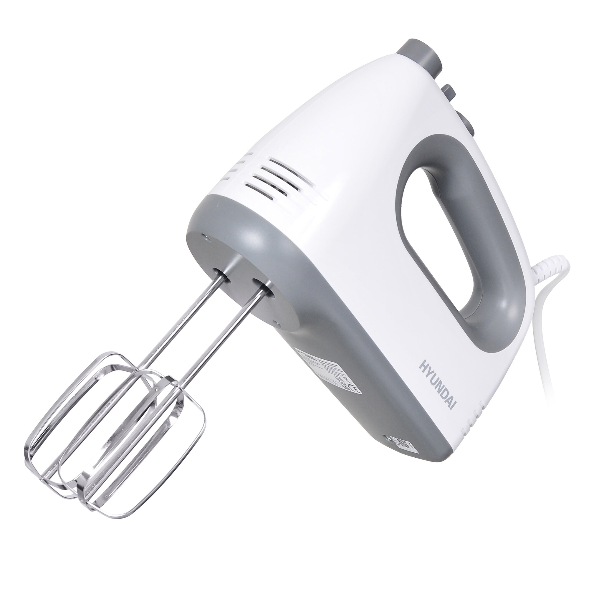 Купить Миксер ручной Hyundai HYM-H4501 белый/серый, Мощность 500 Вт, 5 скоростей, TURBO-режим, 2 года гарантии