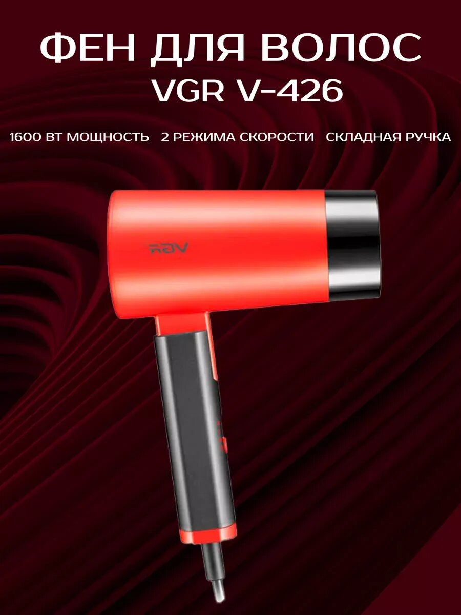 Фен для волос VGR V-432 с насадкой, складная ручка, компактный, дорожный
