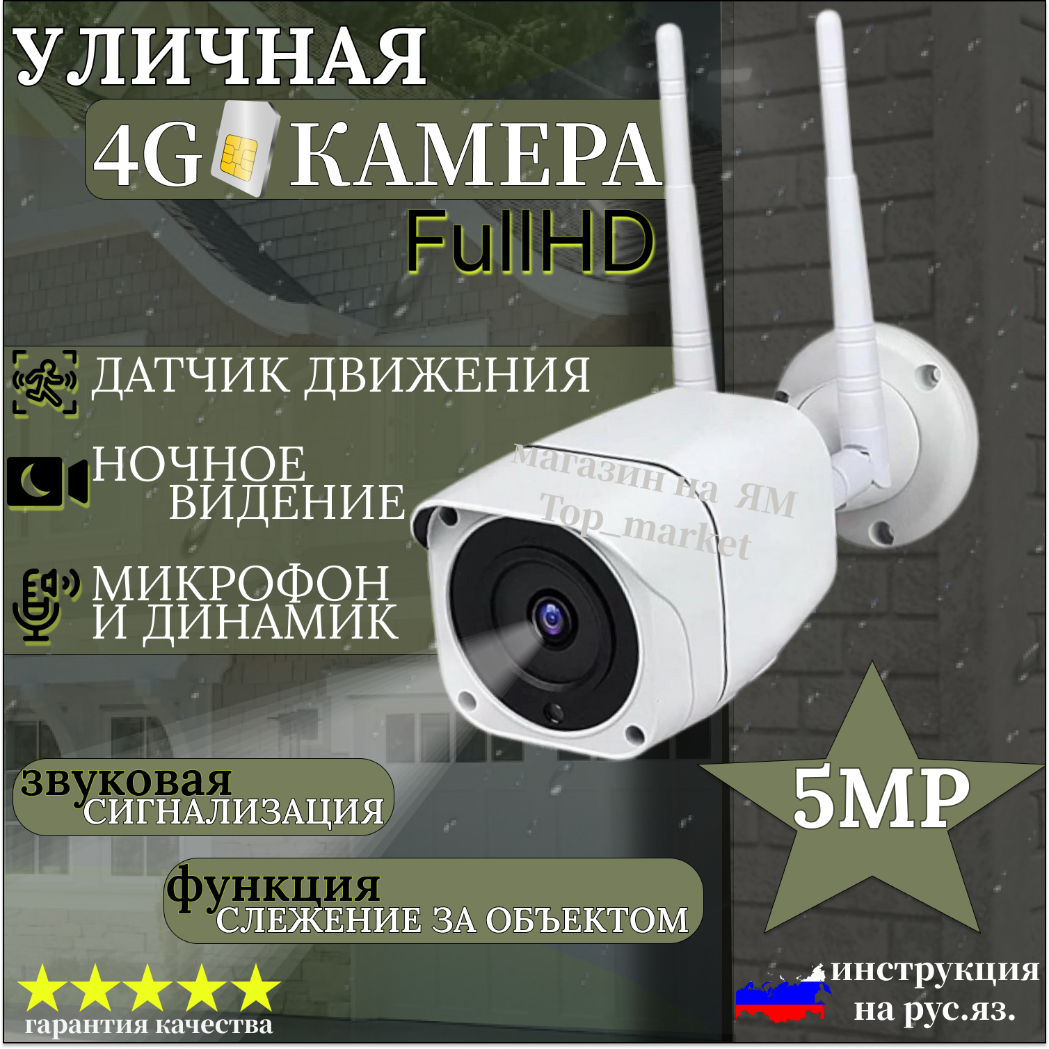 Уличная цилиндрическая 4G камера HE500PW18 с ИК-подсветкой и с SIM картой 1080P 5МП/ видеонаблюдение для дачи/ дальность 30м