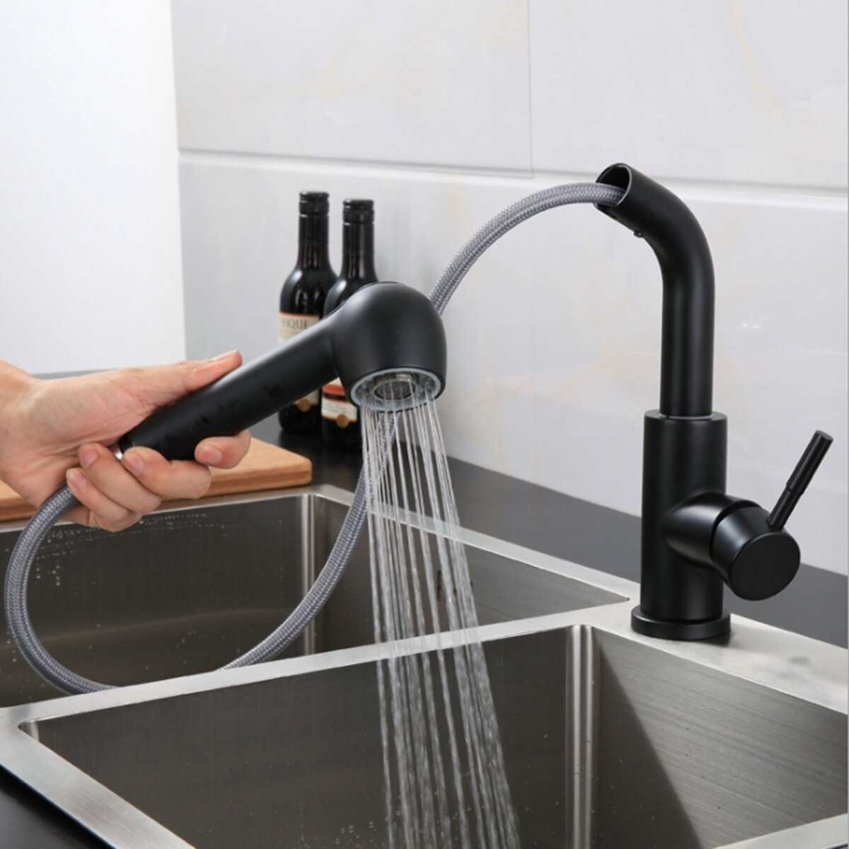 FASHUN Смеситель для кухни мойки из нержавеющей стали с выдвижной лейкой, черный