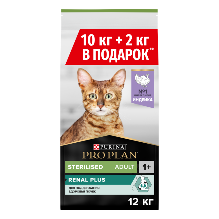 Pro Plan Cat Adult Sterilised OPTI-RENAL для стерилизованных кошек с индейкой - 10 кг + 2 кг в подарок