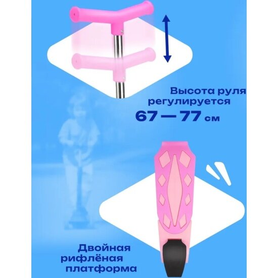 Самокат детский трехколесный COMIRON Yeenot "Зверята", регулируемая складная ручка, светящиеся колеса 110 и 75 мм, нагрузка до 40 кг, розовый / 1 шт.
