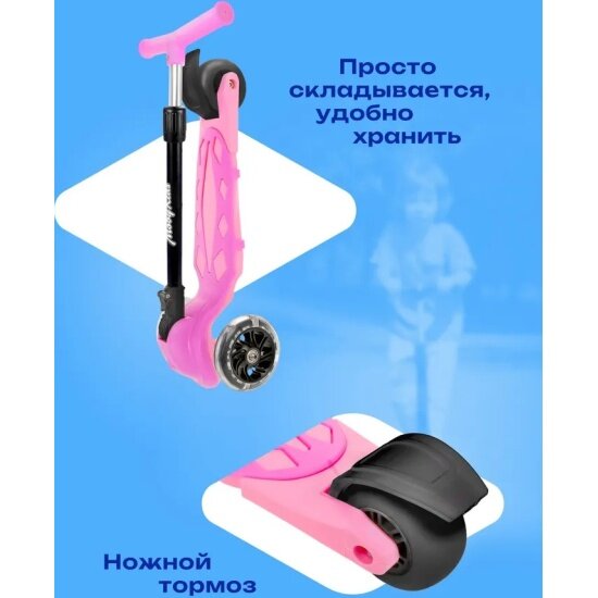 Самокат детский трехколесный складной, 120 мм, розовый Moby Kids