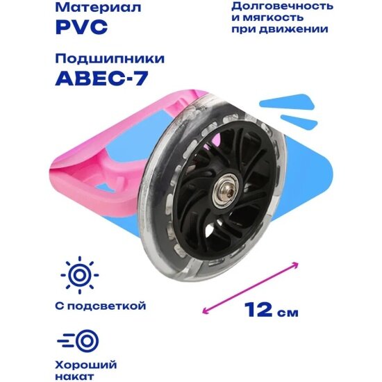 Самокат трехколесный складной, 120 мм PVC, розовый