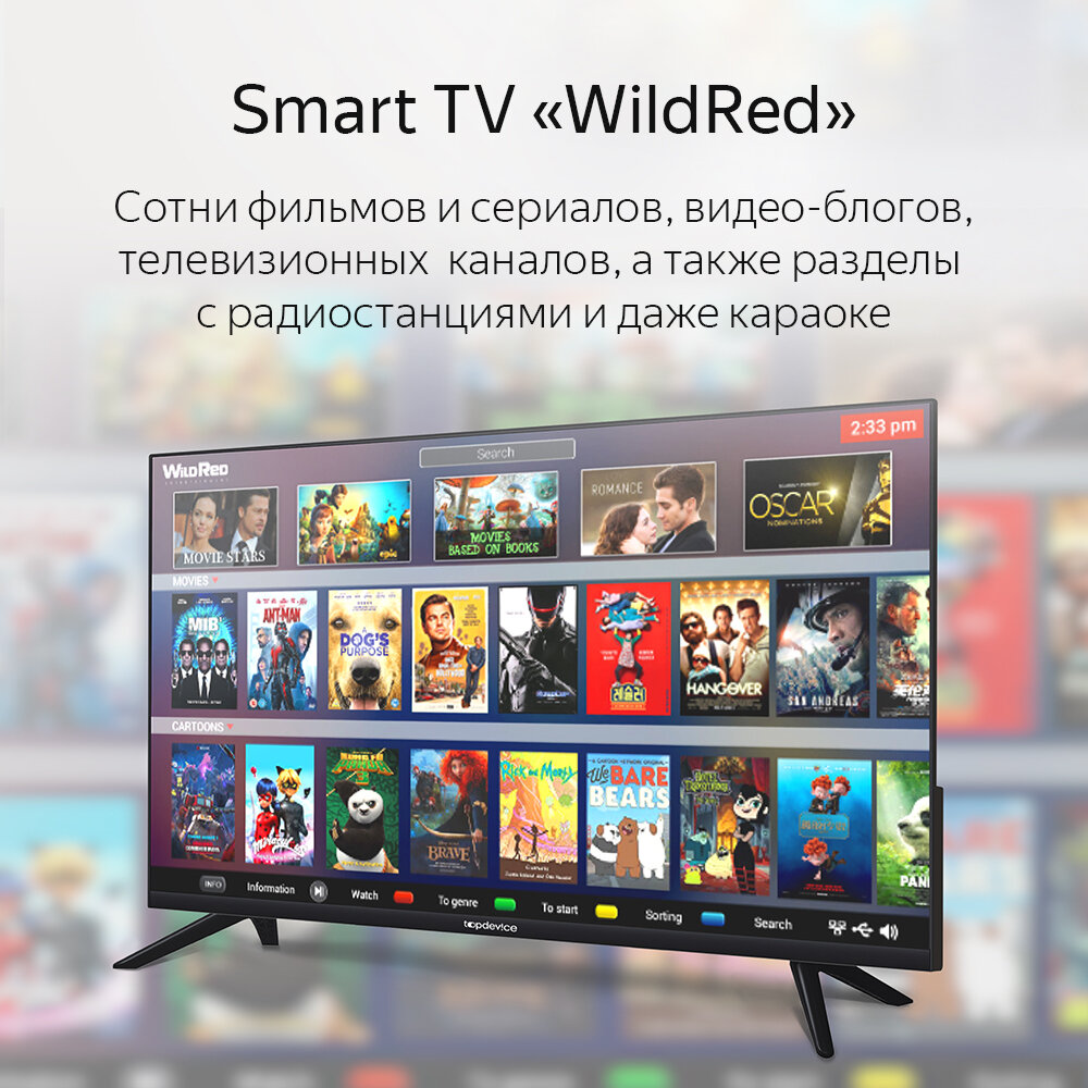 Купить Телевизор Topdevice 32", HD 720p, LED, Smart TV WildRed, Wi-Fi, черный корпус