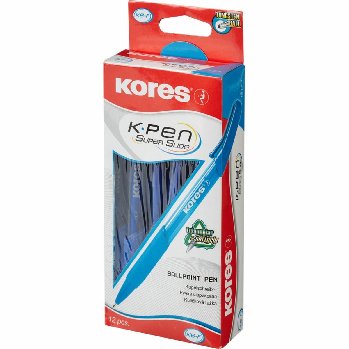 Купить Ручка шариковая автоматическая Kores К6 (0.5мм, трехгранная, синяя), 12шт.
