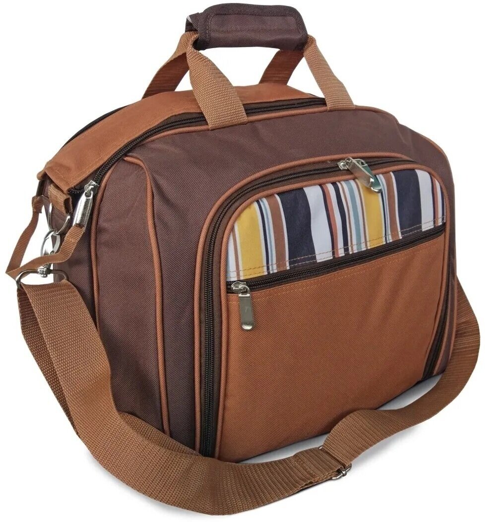 Набор для пикника Грин Глейд Т3338 на 4 персоны с термосумкой на 15л, пластик/нержавеющая сталь коричневый, 33 предмета / отдых на природе