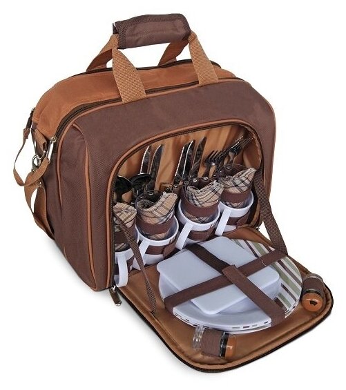 Набор для пикника Грин Глейд Т3338 на 4 персоны с термосумкой на 15л, пластик/нержавеющая сталь коричневый, 33 предмета / отдых на природе
