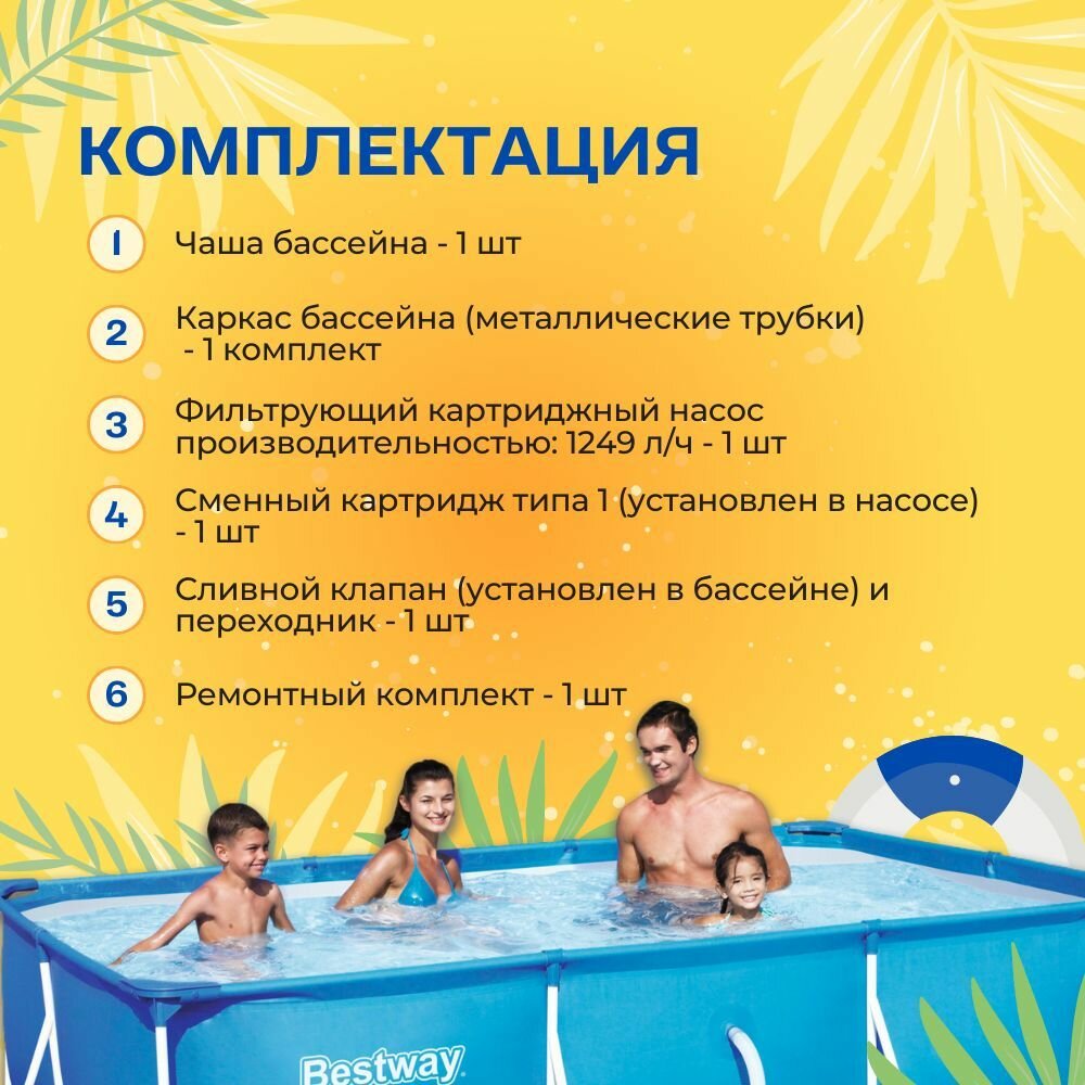 Ниже Вы можете прочитать отзывы на 56411 BestWay Каркасный бассейн прямоугольный, 300х201х66см, фильтр-насос картр 1249 л/ч, ознакомится с подробными характеристиками, посмотреть интересные обзоры и фотографии на 56411 BestWay Каркасный бассейн прямоугольный, 300х201х66см, фильтр-насос картр 1249 л/ч.