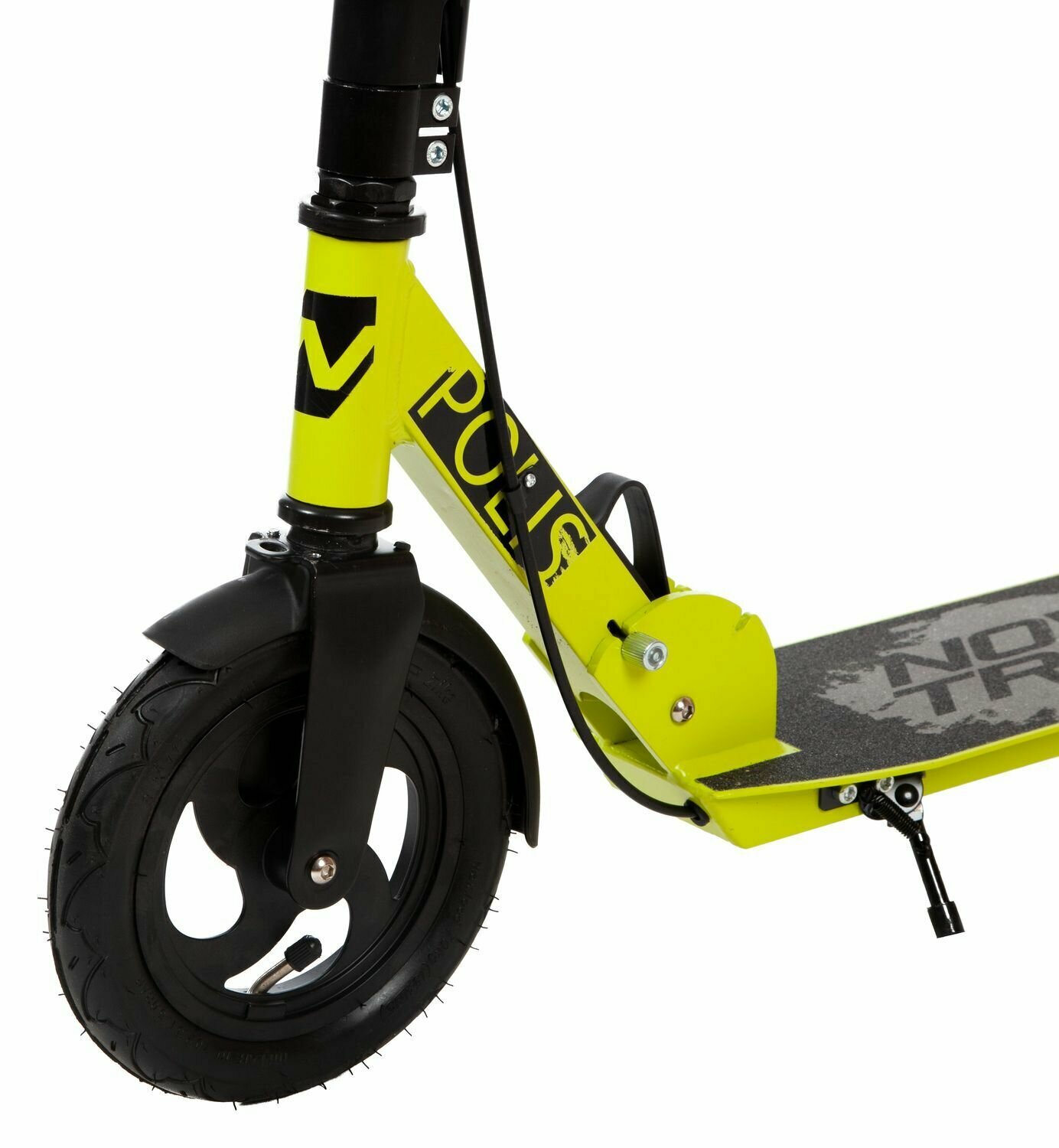 Самокат городской NOVATRACK POLIS с ручным дисковым тормозом, алюм., складной, эргономичный Y-руль с нескладными рукоятями, ватер стикер, колеса надувные 200*200мм с алюминиевым ободом, зеленый