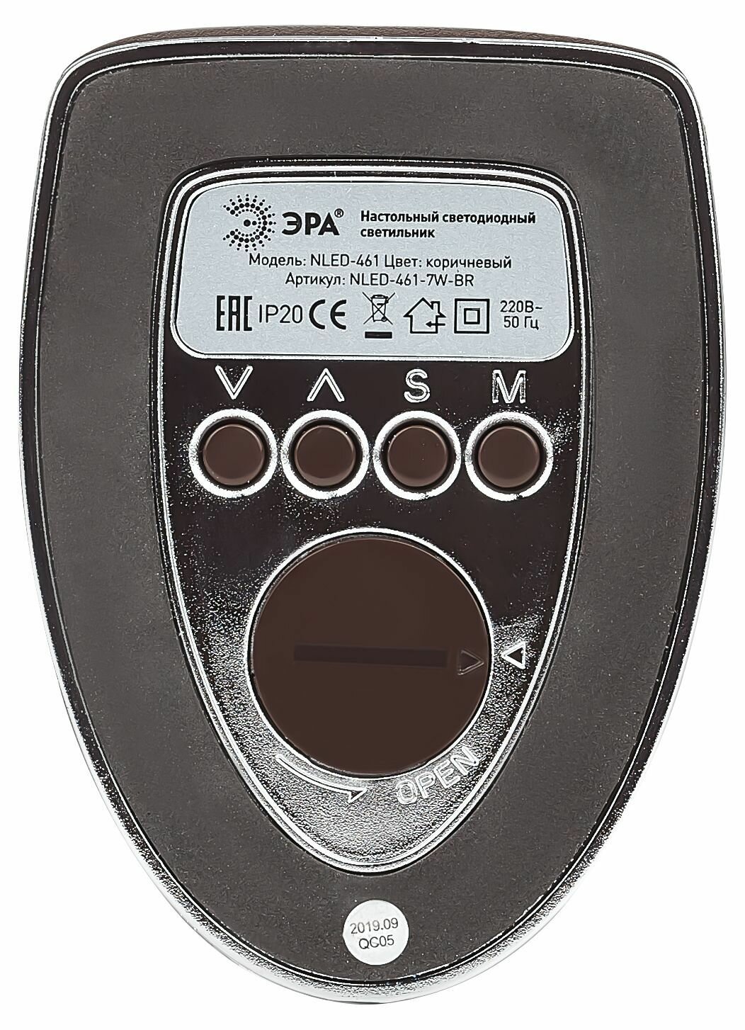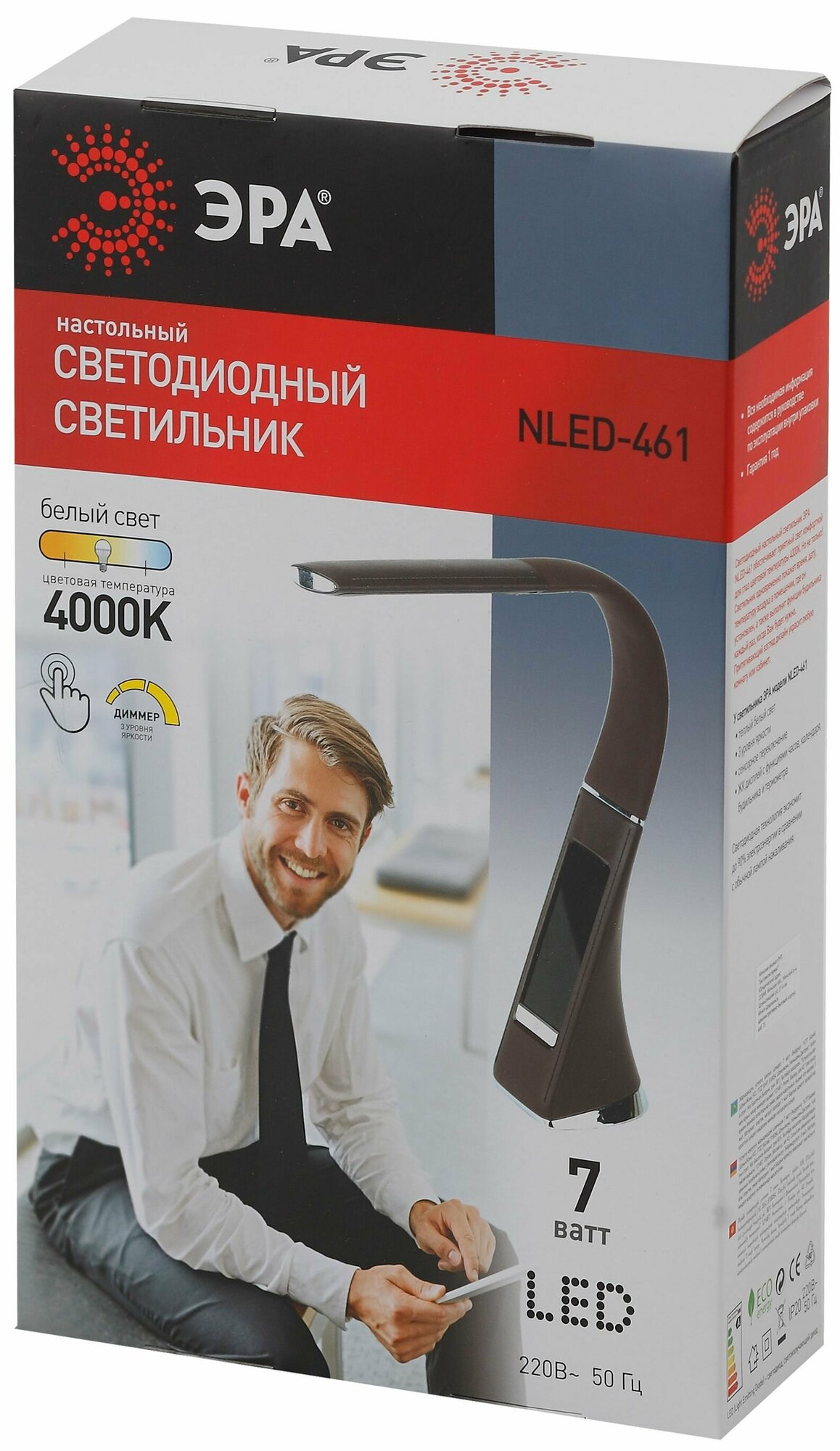 ЭРА Б0031610 Настольный светодиодный светильник NLED-461-7W-BR коричневый {дизайн кожа, 3 ступенчатый диммер яркости, многофункциональный дисплей, цве