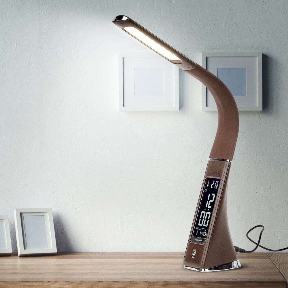 Лампа настольная светодиодная офисная, прикроватная для школьника, для учебы, для чтения ЭРА NLED-461-7W-BR / Светильник настольный хай-тек, лофт с часами, регулировкой яркости и сенсорным управлением, коричневый (Б0031610)