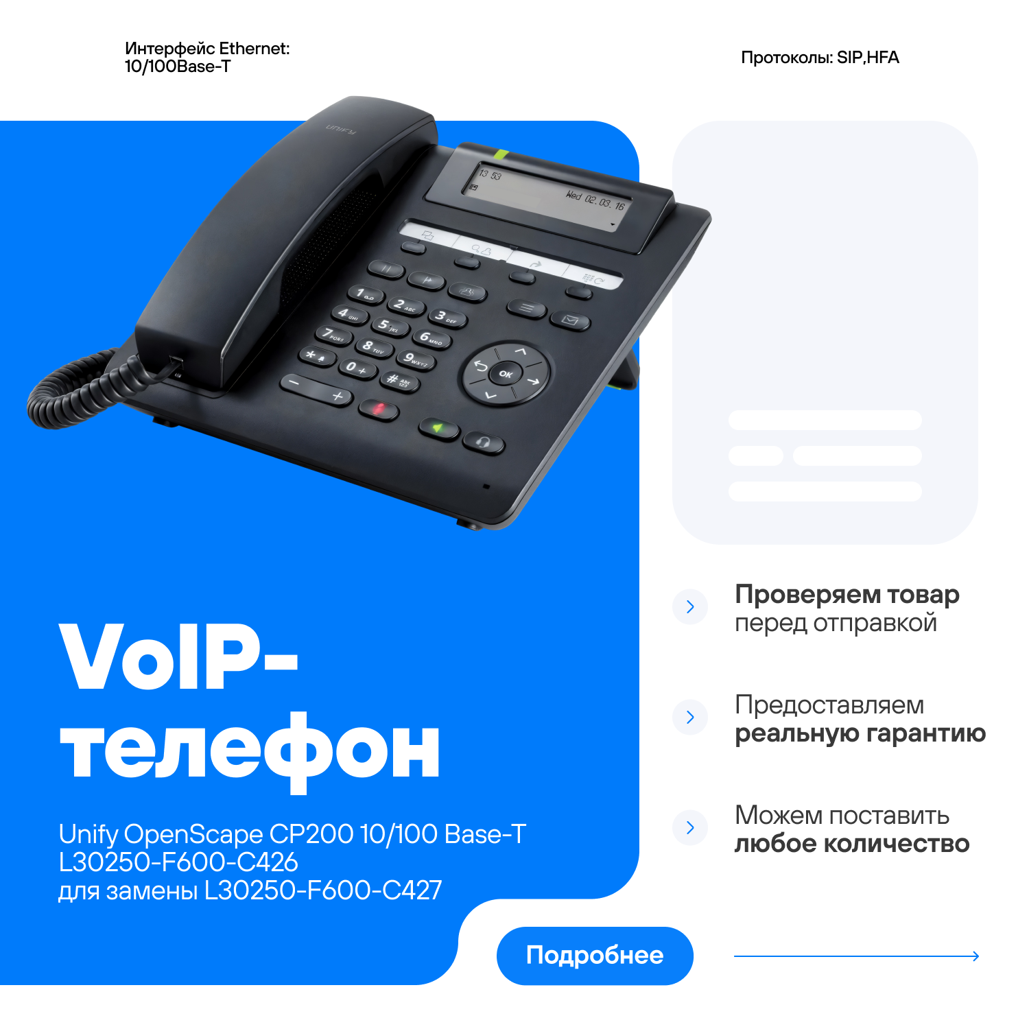 VoIP-телефон Unify OpenScape CP200 10/100 Base-T L30250-F600-C426 интересное: