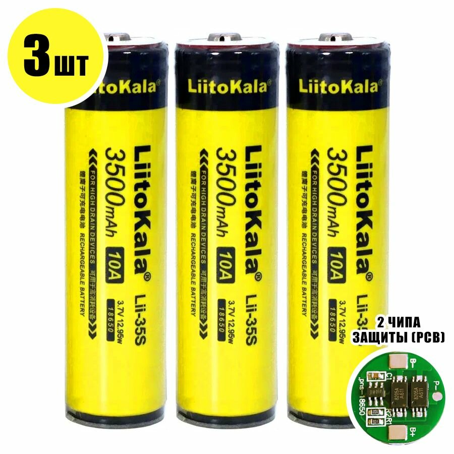 Купить Аккумулятор 18650 (3 шт) LiitoKala Lii-35S 3.7V 3500 mAh c платой защиты от перезаряда и полного разряда / Литий-ионная батарея АКБ 18650 Li-ion 3.7В с емкостью 3500мАч / 2 чипа защиты (PCB)