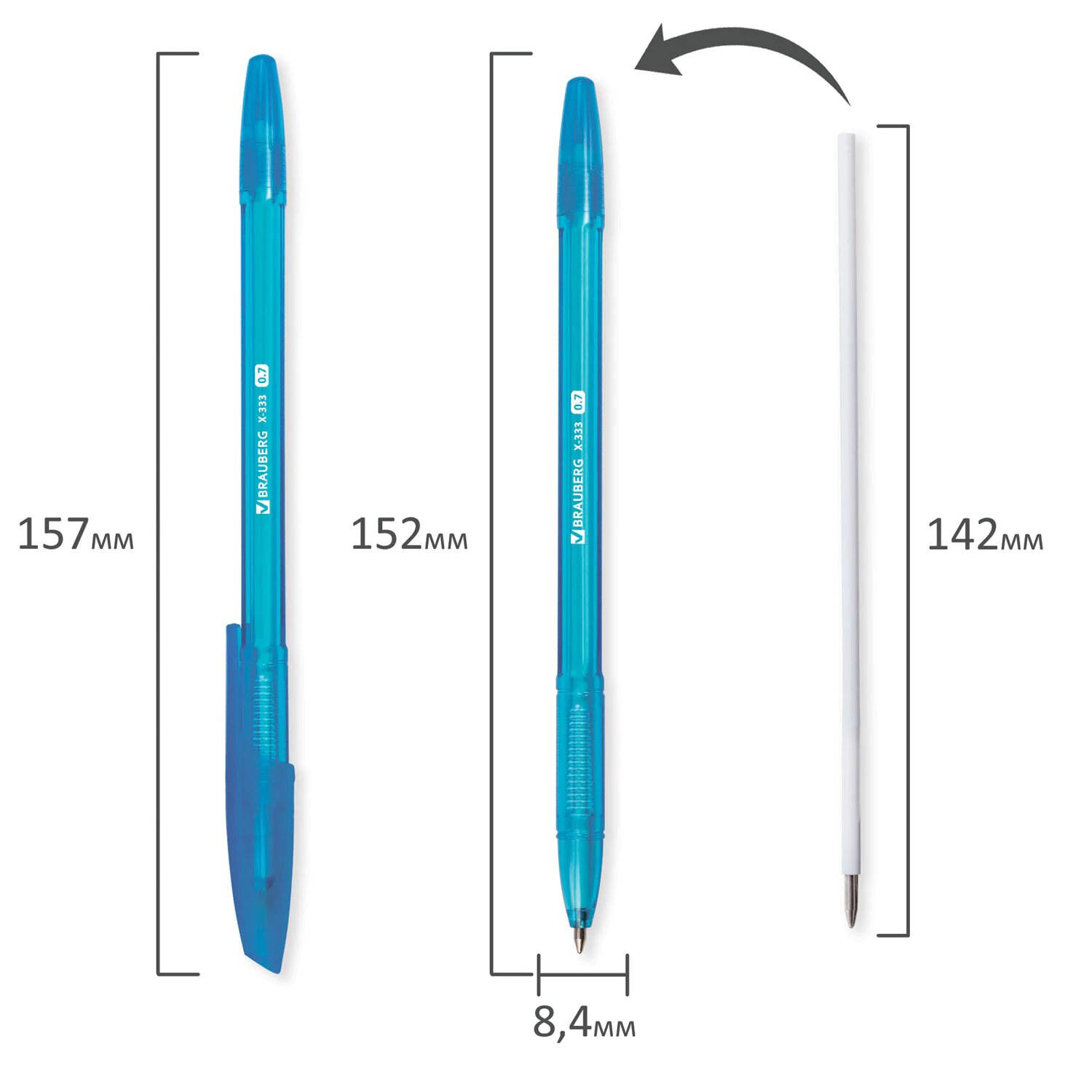 Ручка шариковая BRAUBERG X-333, комплект 50 штук, синяя, узел 0,7мм, линия письма 0,35мм, 880005