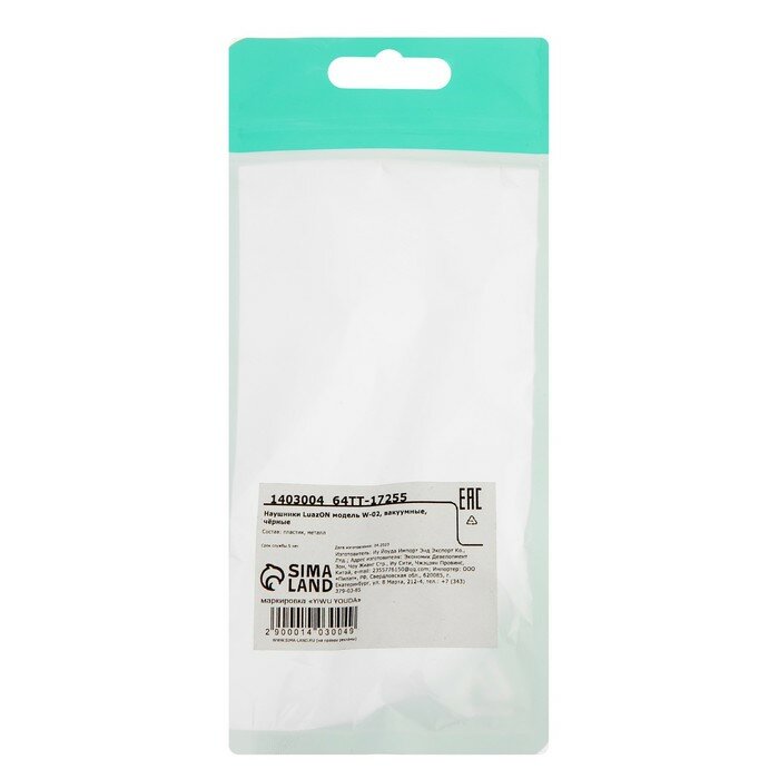 Купить Наушники Luazon «Брилиант» W-02, вакуумные, чёрные