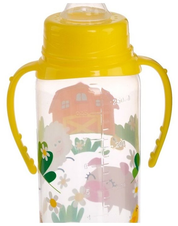 Бутылочка для кормления «Весёлая ферма», классическое горло, с ручками, 250 мл., от 0 мес, цвет жёлтый