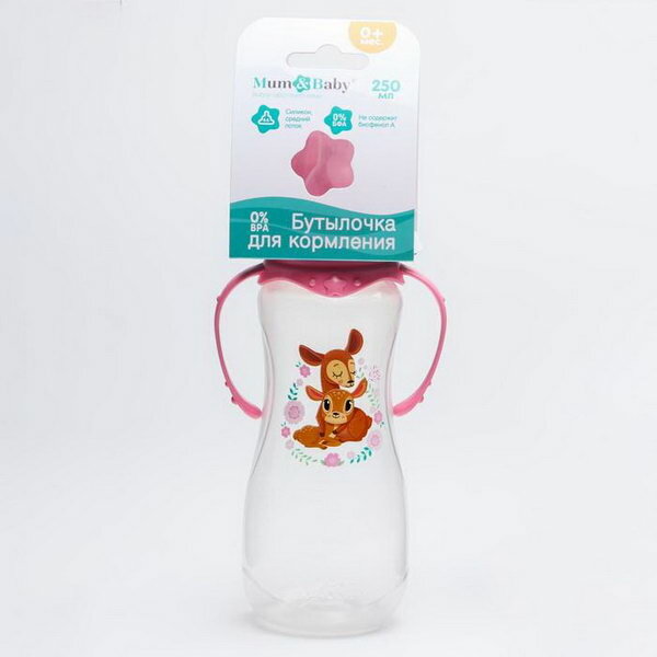 Бутылочка для кормления «Оленята: мамы и малыши» 250 мл приталенная, с ручками, "Mum&Baby", материал полипропилен