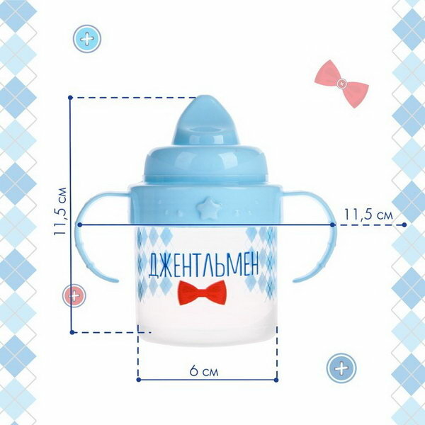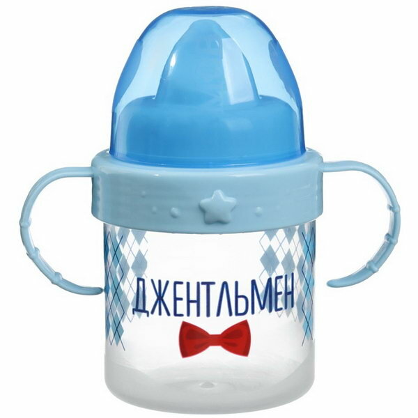 Поильник детский с твeрдым носиком "Джентльмен", с ручками, 150 мл, цвет голубой