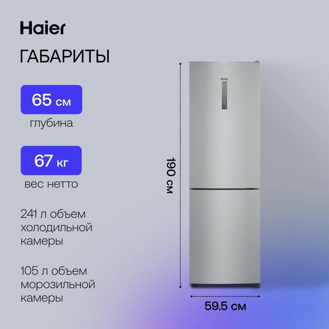 Холодильник Haier Cef535asd, двухкамерный, класс А, 346 л, No Frost, серебристый Haier 9603673 .