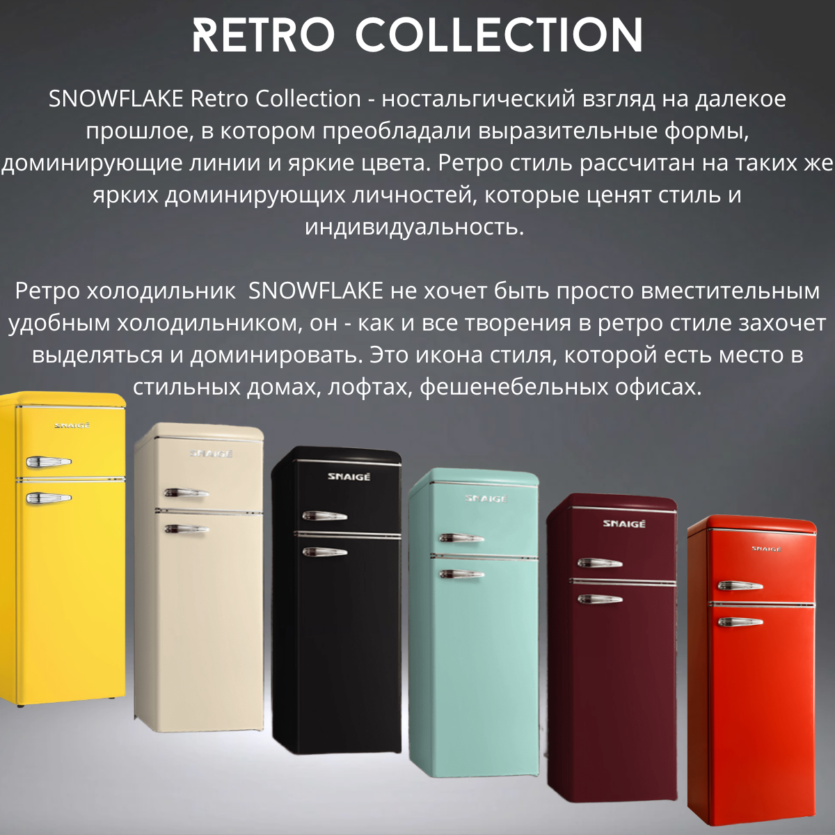 Ретро холодильник Snaige FR24SM-PRJ30E черный высотой 147.5 см и морозильником сверху