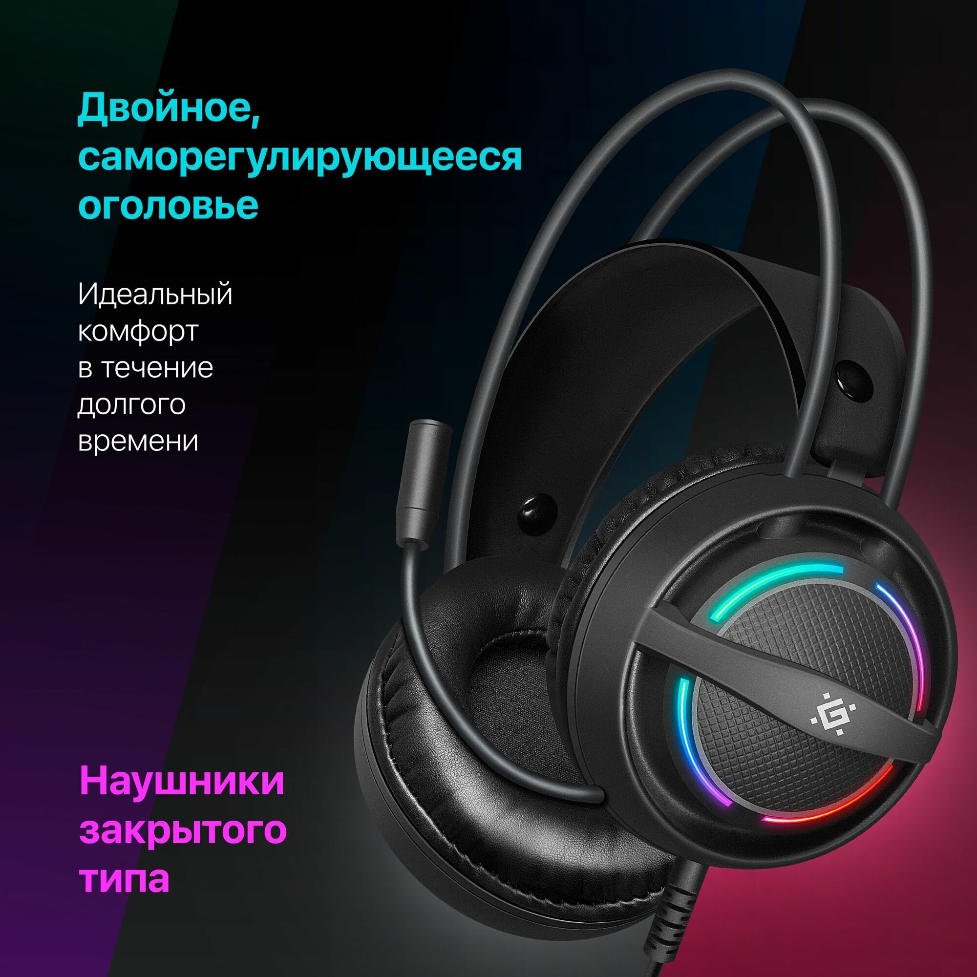 Гарнитура Defender Dexter Rgb, игровая, провод 2.2 м (64595)